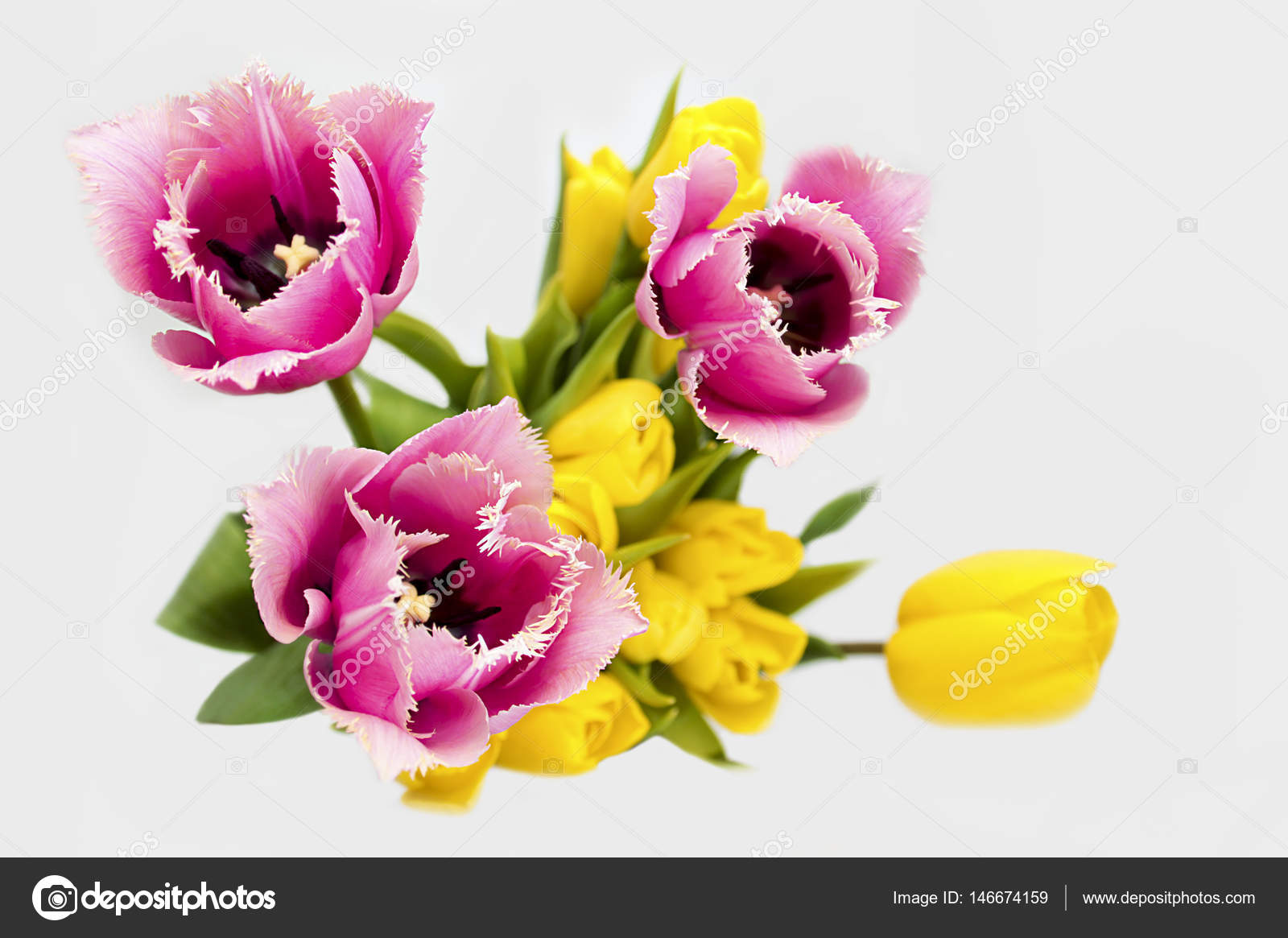 Floral Arrangement Of Yellow And Needle Like Pink Tulips